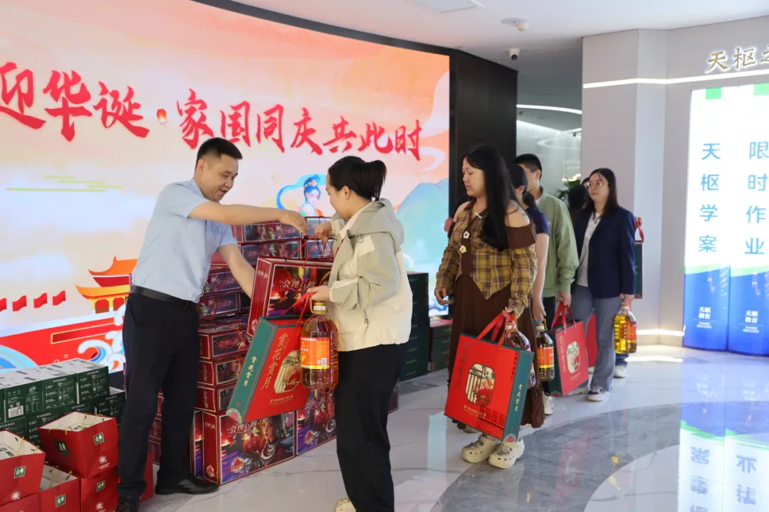 这些礼品看似是常见的生活物资,却藏着天枢教育对员工的细致考量。从舌尖的美味到日常的所需,每一份福利都贴近生活、实用性拉满,既传递了节日的祝福,又让 “家” 的温度渗进每一个生活细节里。